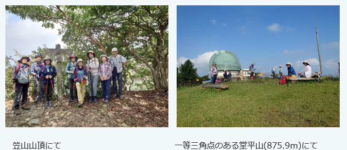 JR八高線(東武線)小川町駅前に集合し、バスで東秩父村の皆谷(カイヤ)バス停へ。そこから笠山に登り、稜線沿いを南下してときがわ町に入る。展望抜群で一等三角点のある堂平山(875.9m)で休憩。