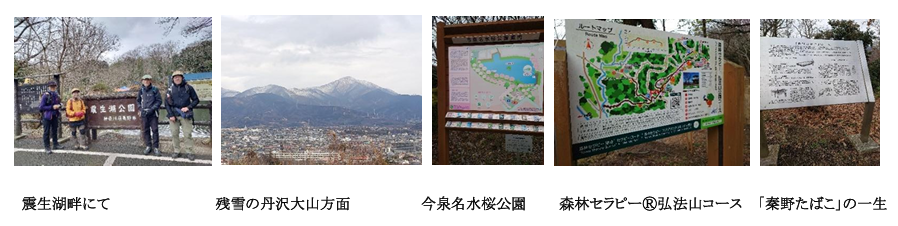 昼食をとり、その後は秦野駅北東側に移動。弘法山に登りセラピーロードを東進、山頂からの眺望後東海大学前駅にて